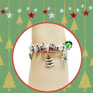 Uma excelente opção para as raparigas que gostam de fazer as suas próprias jóias. Esta pulseira é uma atividade artesanal interessante durante o Natal, pois permite que as raparigas misturem e combinem pingentes e amuletos para personalizarem a sua própria pulseira de Natal.