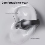 O formato de clip auricular garante um ajuste leve e sem pressão.