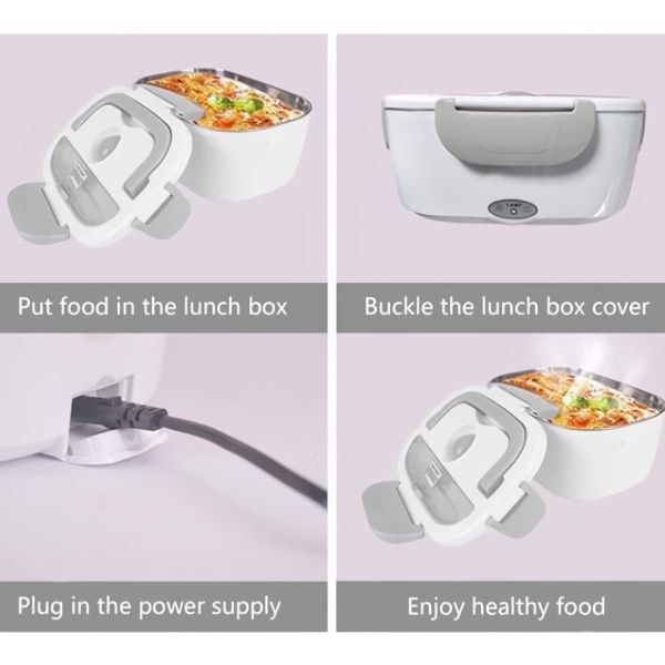 Os 2 compartimentos removíveis de PP mantêm o seu prato principal e acompanhamento separados – e ambos vão direto para a máquina de lavar louça depois. Funciona no escritório, no carro, num estaleiro de obras ou em qualquer divisão com uma tomada elétrica.