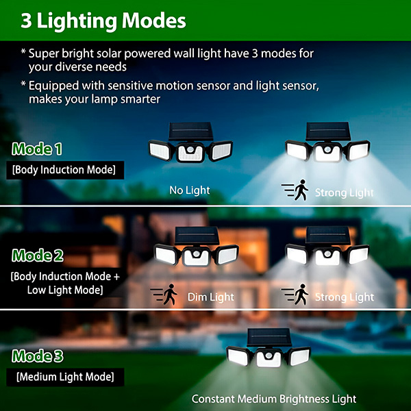 Luz solar de três lados com sensor de movimento | SENSBEAM