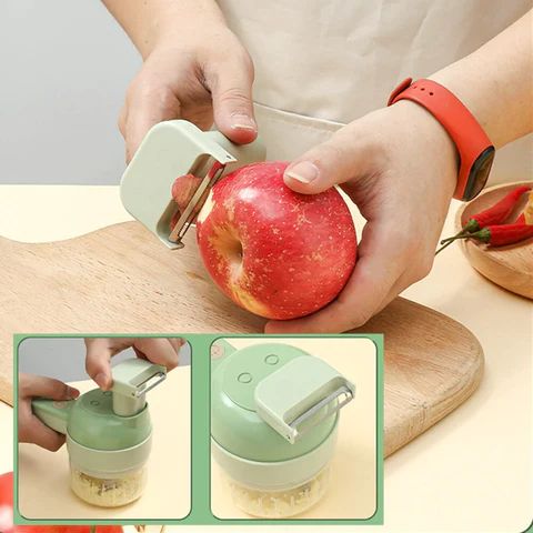 - Conjunto com cortador de legumes elétricos 4 em 1
