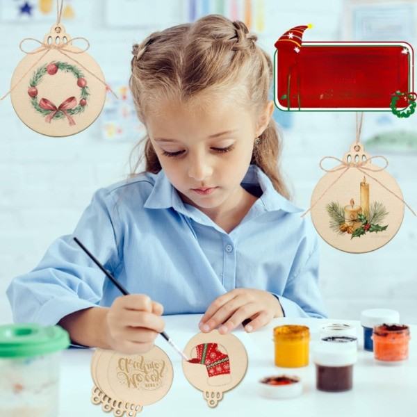 Cada disco de madeira liso e inacabado serve como uma tela em branco para as suas expressões artísticas – ideal para pintar, gravar ou embelezar e assim criar decorações de Natal únicas.