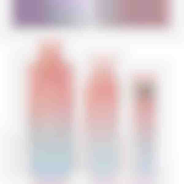 Este conjunto inclui três garrafas de água de cor gradiente, cada uma com uma frase motivacional na frente e medidas de volume no verso.