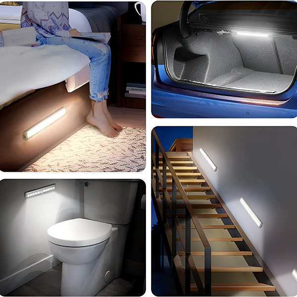 Nunca mais tropece no escuro! Instale esta luz perto do pé da sua cama, para que, quando acordar à noite, a luz se acender automaticamente, guiando-o em segurança para a casa de banho ou para a porta.