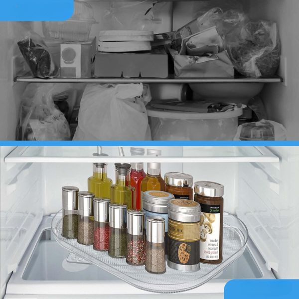 Cansado de um frigorífico desarrumado? O SPINTRAY mantém o seu frigorífico organizado, permitindo-lhe encontrar o que precisa sem ter de procurar nas confusões. A sua rotação suave de 360° significa que tudo está ao seu alcance, poupando-lhe tempo e frustração.