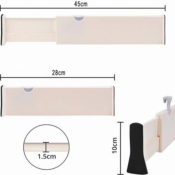 Seja para utensílios de cozinha, artigos de banho ou meias no quarto, estes divisores ajustam-se de 28 cm a 45 cm para se adaptarem à maioria das gavetas. Pode personalizar o seu espaço exatamente como quiser.