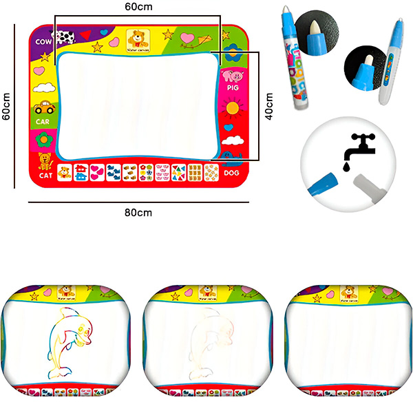 📦 Está incluído: 2 marcadores e um grande tapete de desenho com 80 x 60 cm