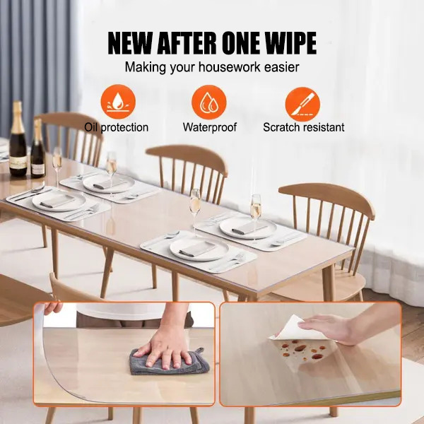 Melhore o seu espaço de refeição com a nossa toalha de mesa em PVC premium. Concebida para manter a sua mesa em perfeito estado, oferece uma proteção excecional contra riscos, derrames e muito mais.